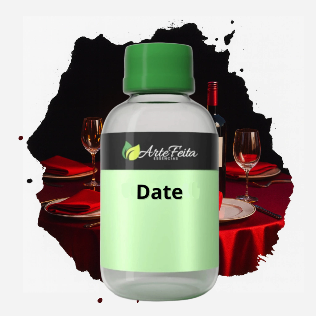 O resultado é um aroma encantador, equilibrando doçura e sensualidade, ideal para ambientes que pedem um toque de charme, amor e exclusividade. Perfeita para difusores, aromatizadores e sabonetes artesanais, a essência Date transforma qualquer espaço em uma atmosfera de puro encantamento.